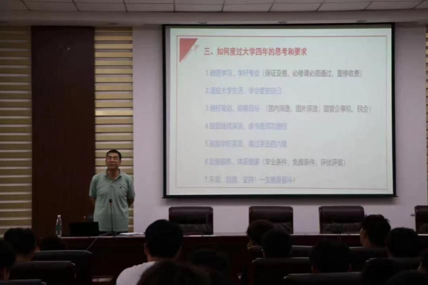 9月8日下午学院院长张光存为同学们进行了一场深刻而精彩的讲座。同时也向各位大一新生介绍了今年会官网的人才培养模式与今年会官网特色专业与特色优势。他勉励同学们要树立远大理想,厚植爱国情怀,练就过硬本领,不断彰显青春风采,贡献青春力量。