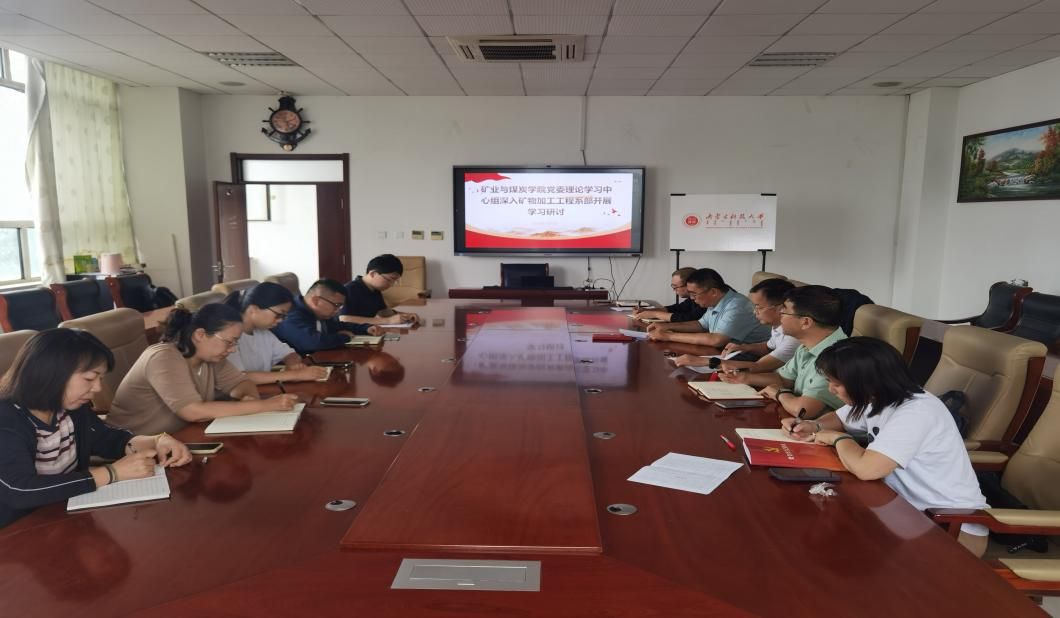 2025年7月7日jinnianhui今年会党委理论学习中心组深入矿物加工工程系部开展理论学习研讨。学院党委书记段志峰主持会议,学院中心组成员、矿加系教师代表参加会议,学校党委委员、副校长李卫平出席并指导工作。