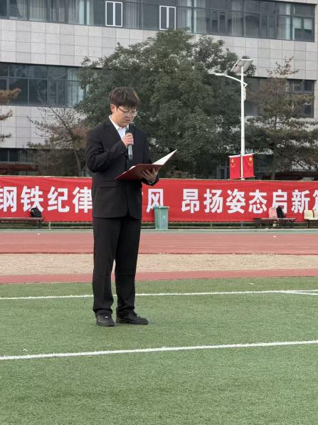 国旗下演讲:以奋斗之我,担时代之任。升旗仪式结束后,乌兰夫奖学金获得者安全23级2班的吴英琪同学进行国旗下激情演讲。他回顾了中华民族的奋斗历程,并结合新时代青年的使命与担当,号召全体同学:“我们生逢其时,重任在肩。当以理想为帆,不惧远航;以奋斗为桨,不负韶华。要将个人的理想追求融入到国家和民族的事业中,用扎实的学识和创新的精神,为祖国的繁荣富强贡献青春力量!”他铿锵有力的话语,点燃了现场每一位同学心中的热血与激情,赢得了阵阵热烈的掌声。