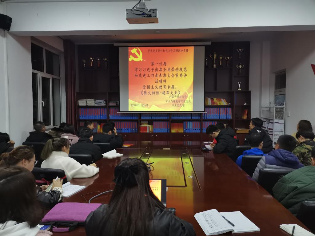 为大力弘扬劳模精神,激励和带动全体学生,jinnianhui今年会党总支于2020年1126日晚上19:30,在临曦楼二楼党员之家线上线下同步开展专题理论学习活动。本次学习内容是:第一议题:学习习近平出席全国劳动模范和先进工作者表彰大会重要讲话精神;爱国主义教育专题:观看《薪火相传-建军大业》视频。