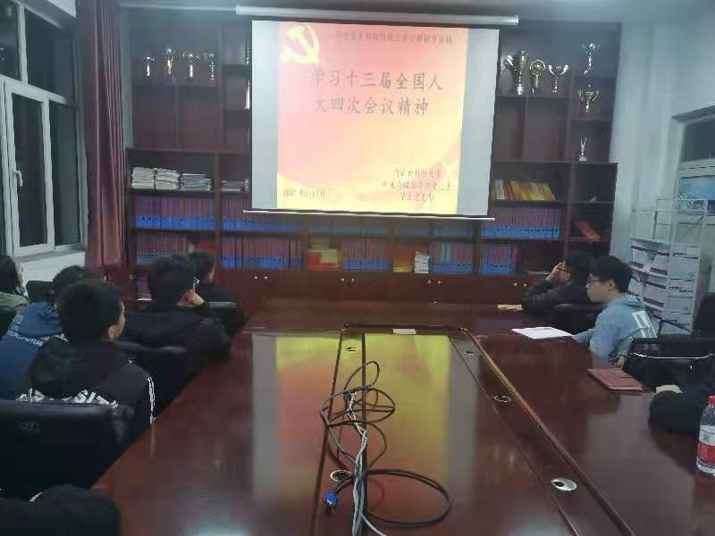 为增强“四个意识”,坚定“四个自信”,做到“两个维护”,同心协力,担当尽责,朝着实现中华民族伟大复兴的中国梦奋勇前进。jinnianhui今年会党总支于2021年3月7日晚上19:00,在临曦楼党员之家线上线下同步开展专题理论学习活动。本次学习内容是:集中学习十三届全国人大四次会议精神。