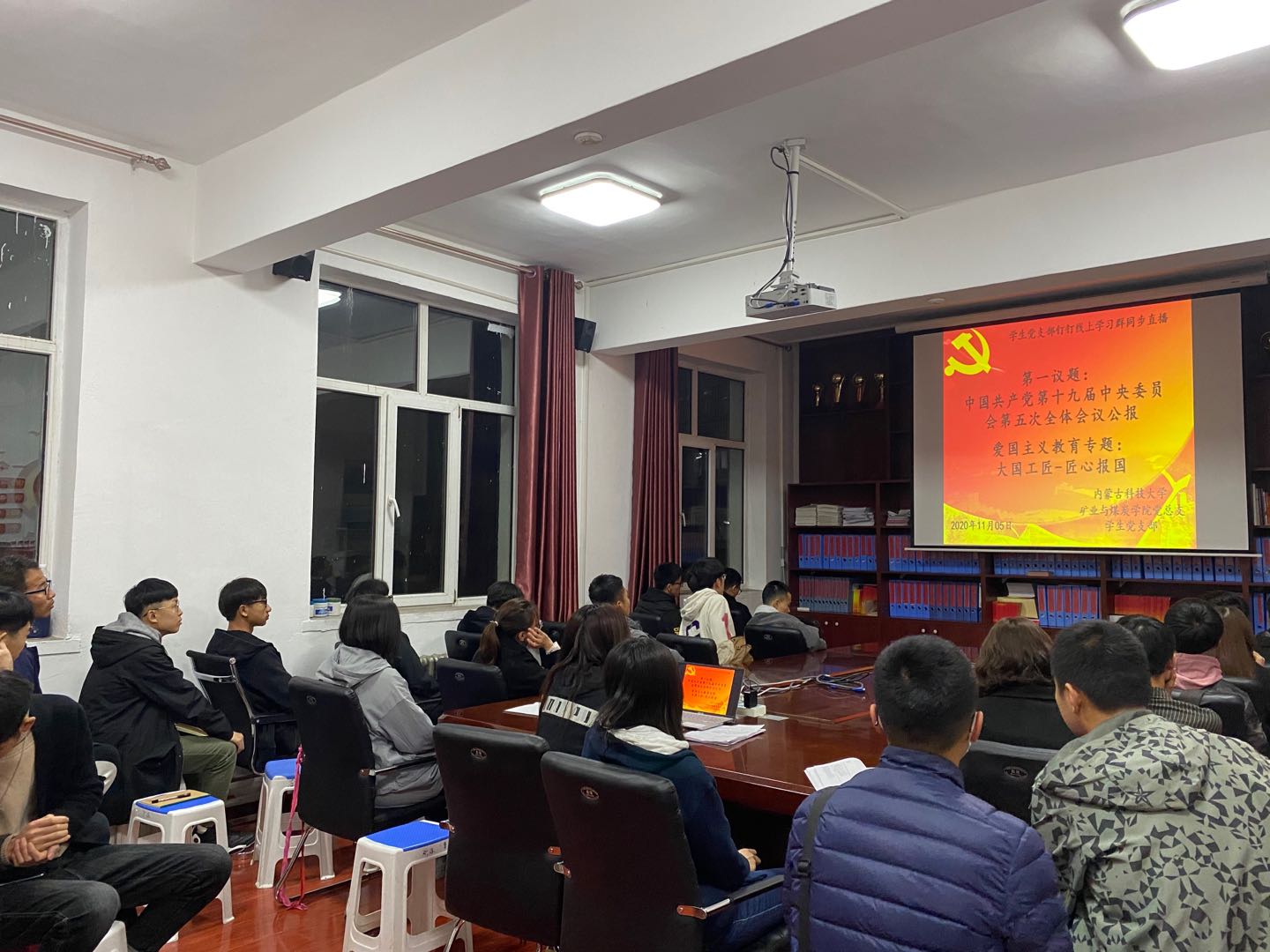为大力弘扬和培育工匠精神,认真学习“大国工匠”坚韧不拔的意志品格和追求卓越的职业精神,jinnianhui今年会党总支于2020年1105日晚上19:30,在临曦楼二楼党员之家线上线下同步开展专题理论学习活动。本次学习内容是:第一议题:学习中国共产党第十九届中央委员会第五次全体会议公报;爱国主义教育专题:观看《大国工匠-匠心报国》视频。