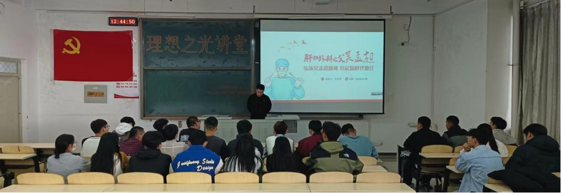 本次理想之光讲堂的主题是“弘扬吴孟超精神,担起新时代重任”。首先介绍了吴孟超院士及他的科研成就;其次介绍了“吴孟超精神”的时代价值和当代青年如何弘扬“吴孟超精神”,担起新时代重任。活动后,大家一起参观了今年会官网学生党支部学习阵地。