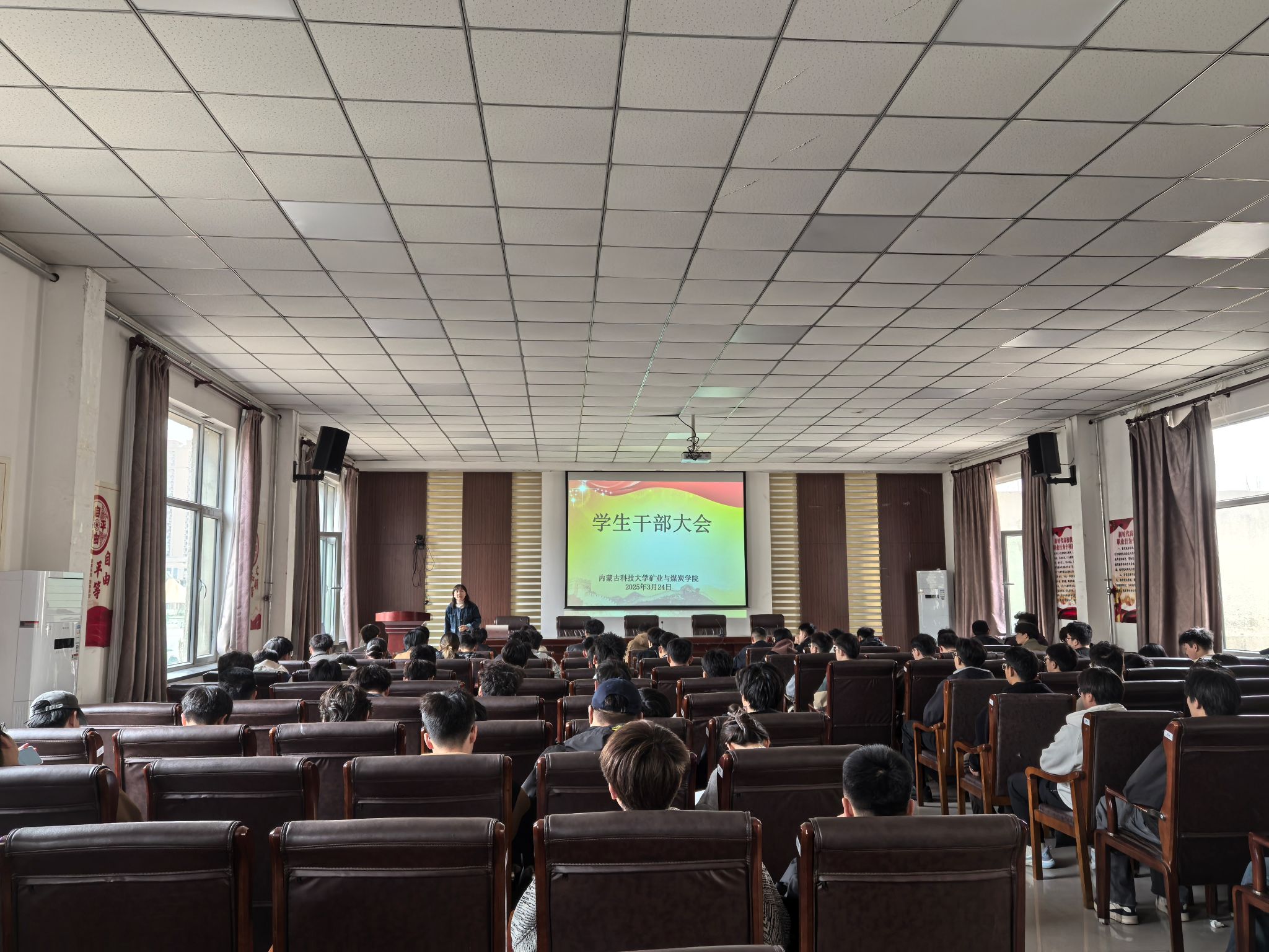 为全面提升学生干部队伍的综合素质,进一步强化学生骨干的责任意识与使命担当,jinnianhui今年会于3月24日在实验实训楼学院会议室召开学生干部大会。学院党委副书记、副院长温静雅、学生工作办公室主任胡显峰、学院团委书记郭灵飞及学院各班班长、团支书出席会议。会议围绕学生干部的担当、责任、示范引领作用、日常管理能力提升、校园文化建设等主题展开交流和工作布置,为新学年学生工作高质量发展注入新动能。