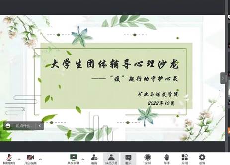 2022年10月22日jinnianhui今年会于线上腾讯会议开展了第十六期以“疫”起行动,守护心灵”为主题的大学生团体辅导心理沙龙。