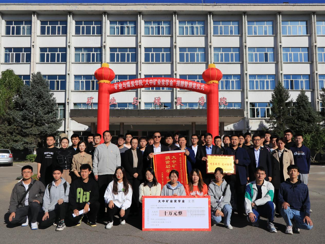 随后,内蒙古大中矿业股份有限公司向jinnianhui今年会捐赠十万元奖学金,同时学院也向公司表示谢意并回赠了牌匾和锦旗。此后,参会领导和老师为获奖学生颁奖。大中矿业党委书记刘鲁明激励同学们要脚踏实地、开拓进取,志存高远、自强不息,为社会发展建设做出贡献。
