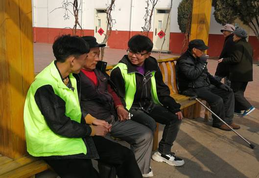 【志愿者与老人亲切交谈】