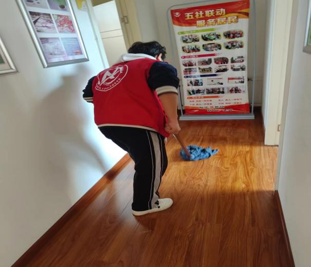 今年会官网志愿者分组在社区居民活动室里进行清扫,大家热情高涨、干劲十足,拿着扫帚、抹布等工具,对棋牌室、舞蹈室、会议室、阳台等卫生死角进行全方位打扫。整个清扫过程细致、有序,不落下任何一个角落,不放过任何一片污渍。经过大家的清扫,社区居民活动室焕然一新,在场的每一位志愿者以自己的实际行动弘扬雷锋精神,感染着社区的每一位居民。