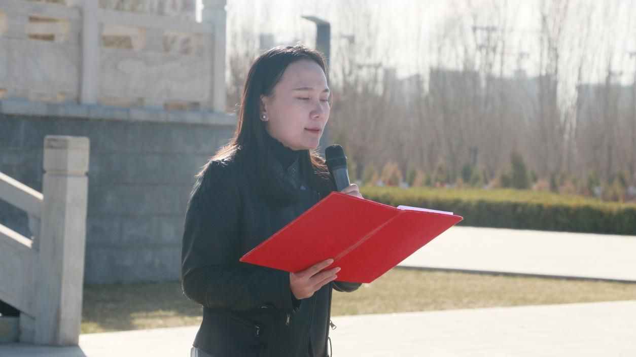 同学们怀着深厚的爱国情怀和对先烈的无限哀思唱响国歌。鲜花献英烈,哀思祭忠魂。国旗护卫队迈着坚定的步伐向革命先烈敬献鲜花,师生依次敬献花束,表达缅怀之情。团员代表朱永峰进行演讲,诉说了对革命英烈的赞颂与怀念,表达了对先烈的缅怀之情。随后,学生党员乔佳带领全体党员重温入党誓词,张萌带领全体团员重温入团誓词,铮铮誓言,字字千钧。慷慨激昂的声音回荡在烈士陵园上空。党的光辉,照耀着青年的成长之路,激励青年争做时代追梦人,以党的信念为指引,不断追求进步。